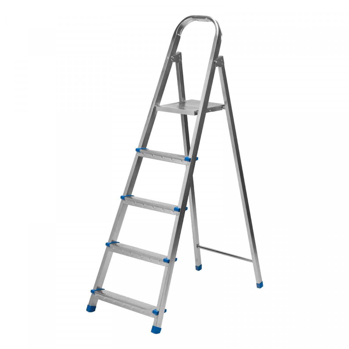 Стальная оцинкованная стремянка Сибртех 97837 с 5 ступенями позволяет повесить полку, картину или шкафчик, достать нужный предмет и решить другие задачи, для которых требуется доступ к предметам на высоте. Рама и ступени из стального профиля выдерживают вес до 120 кг. Расстояние от опорной поверхности до площадки составляет 99 см, при среднем росте пользователя 170 см рабочая высота лестницы — 299 см. Необходимо соблюдать технику безопасности: размещать стремянку только на ровной плоскости и не использовать ее для работы с дрелью, шуруповертом и другим электроинструментом.