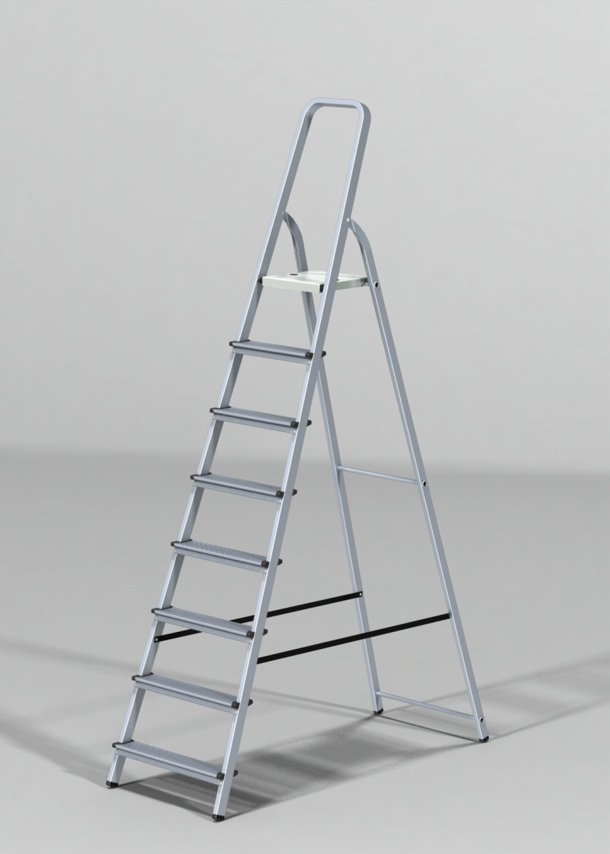 Стремянка 8 ступеней обладает повышенной прочностью и надежностью при небольшом весе.