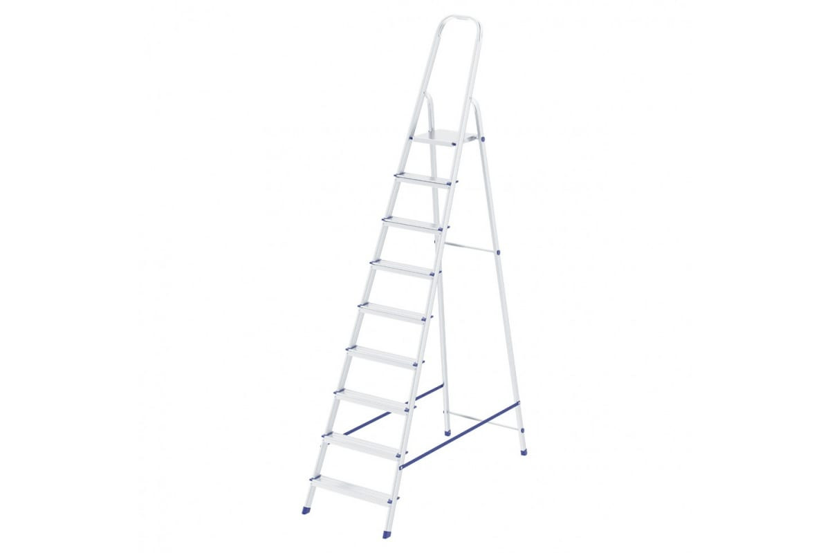 Стремянка 9 ступеней стальной профиль, алюминиевые ступени СИБРТЕХ