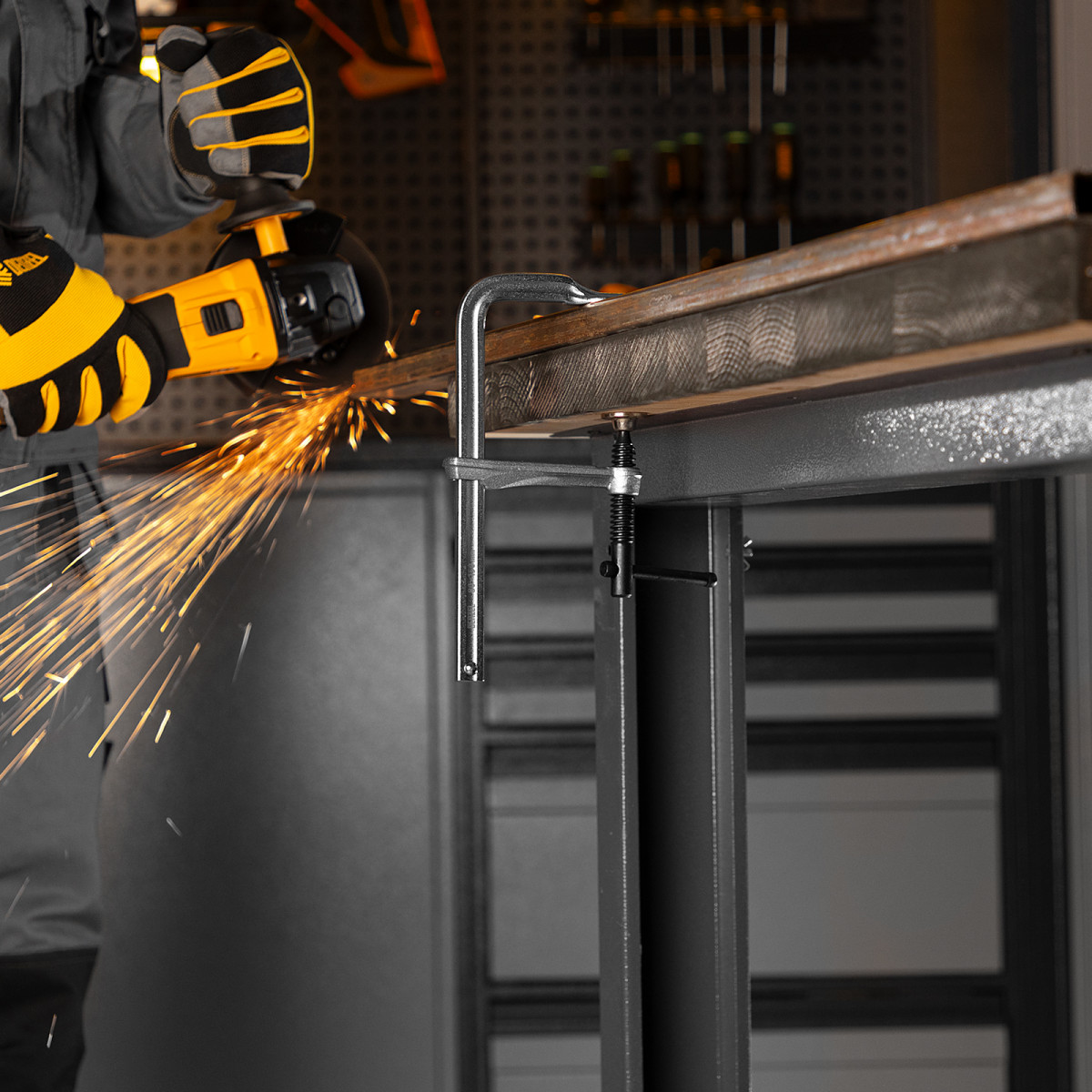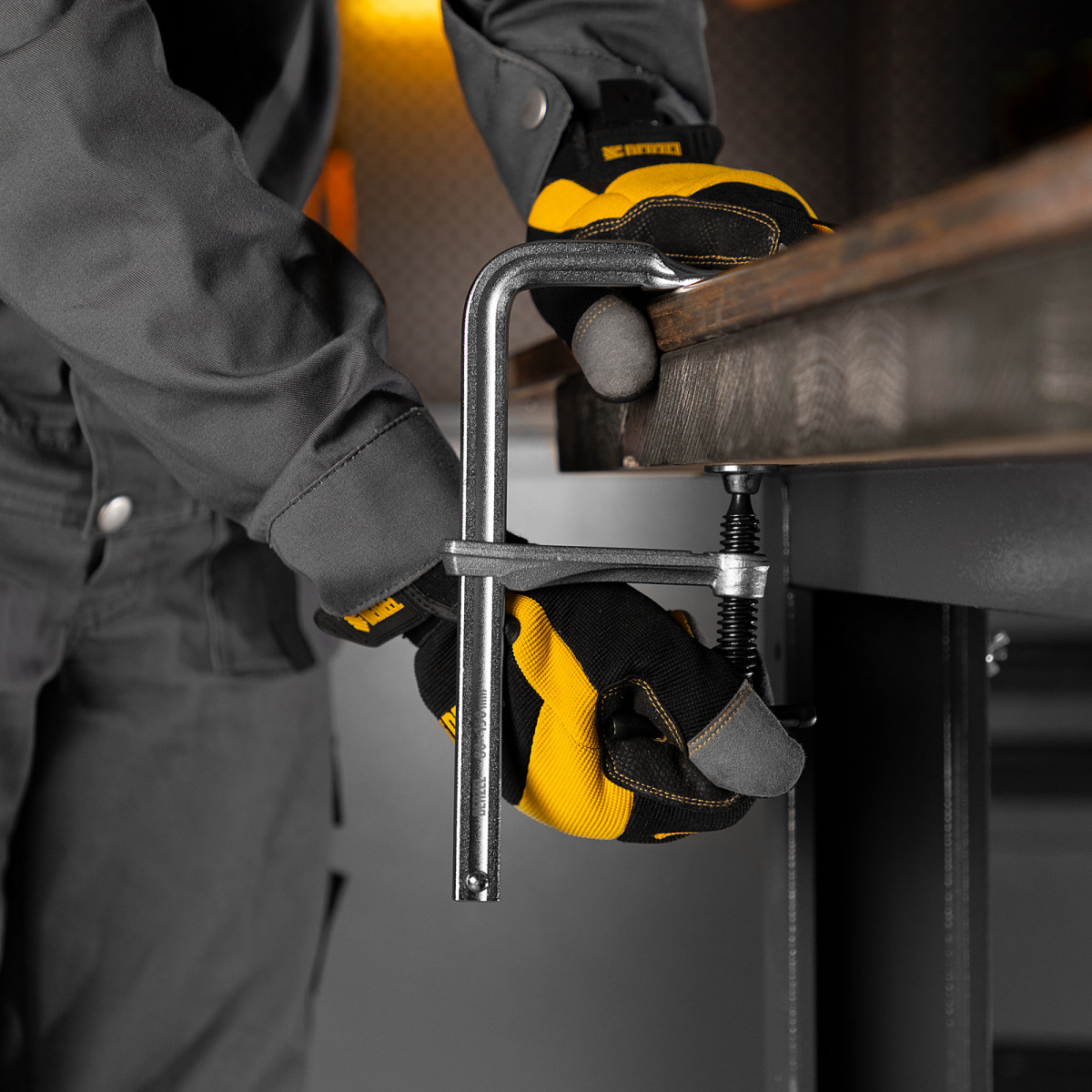Кованая струбцина Denzel обладает высокой прочностью за счет корпуса из закаленной конструкционной стали.
