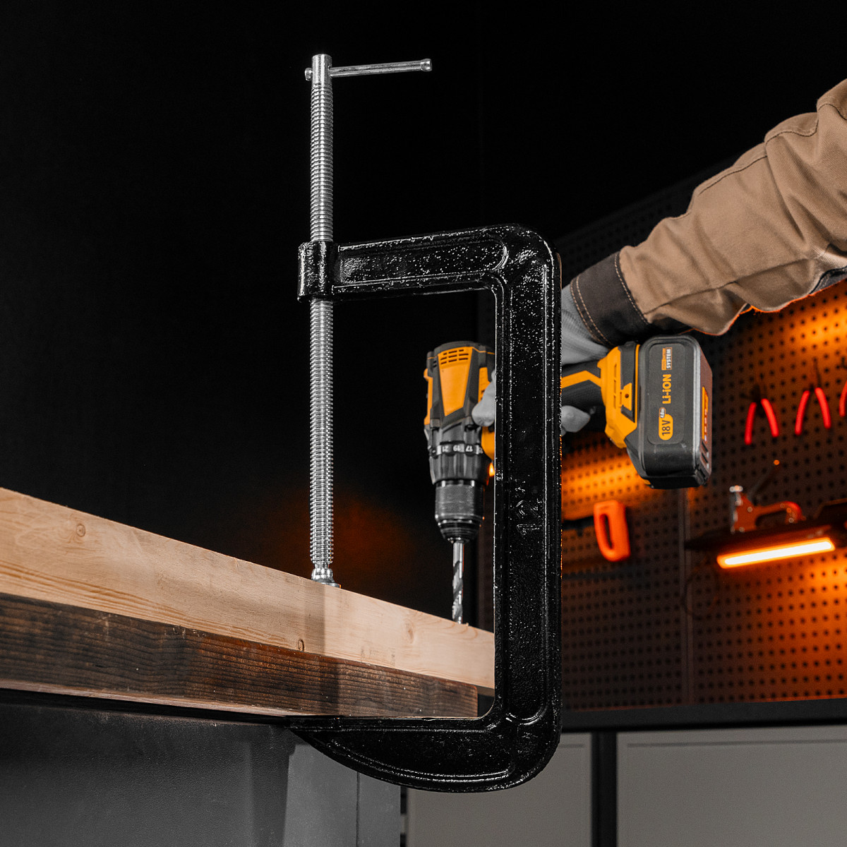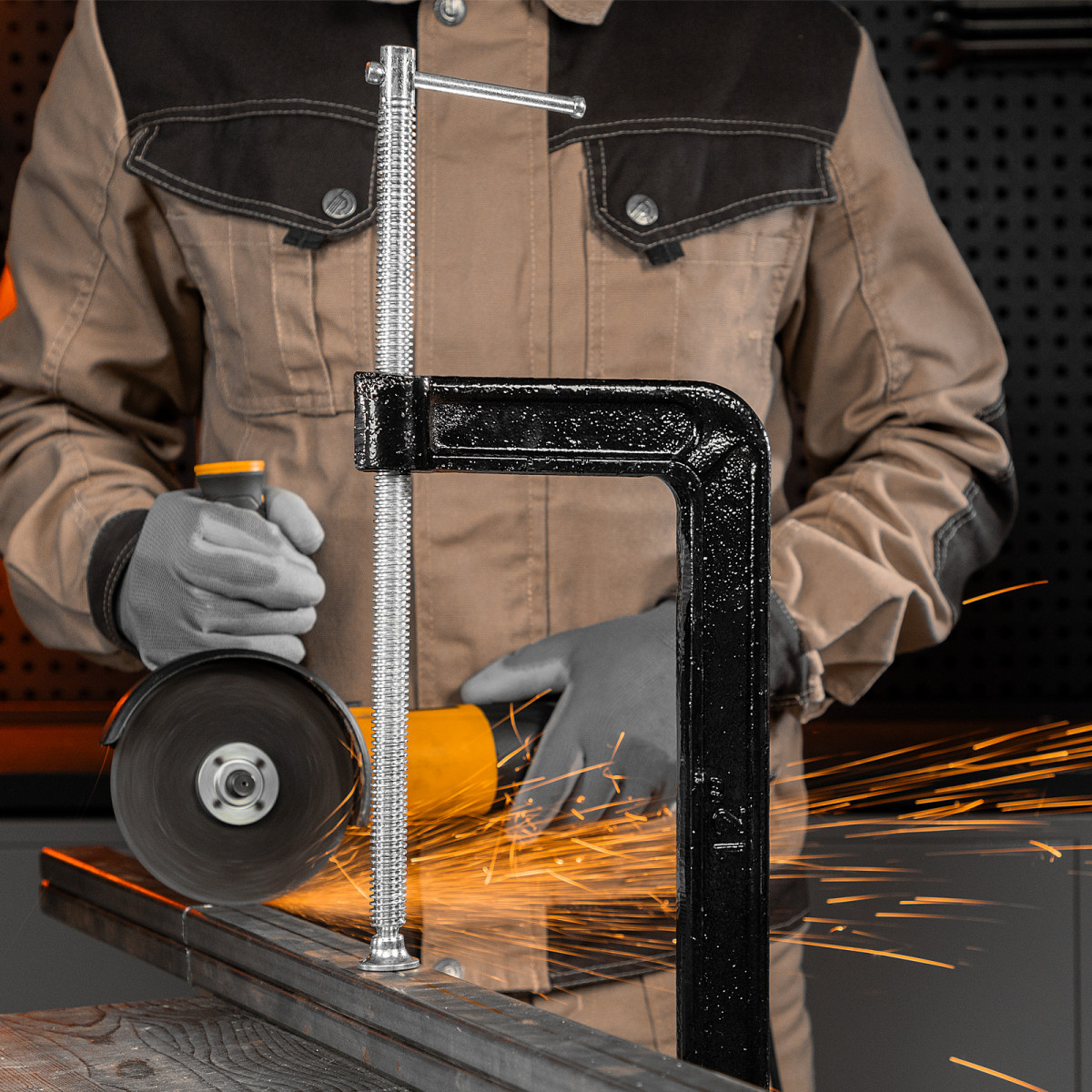G-образная струбцина Sparta 206715 с шириной зажима 300 мм надежно фиксирует различные детали для дальнейшего склеивания, сверления, пиления, шлифования или сварки. Винт с воротком и крупной червячной резьбой позволяет зажимать детали плавно и со значительным усилием. Струбцина будет полезна домашнему мастеру.