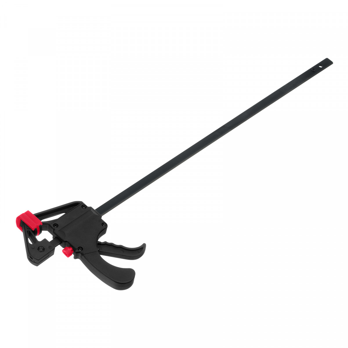 • Простая конструкция — подвижная губка перемещается вдоль штанги при помощи пластинчатого механизма, а фиксатор препятствует разжиманию струбцины.