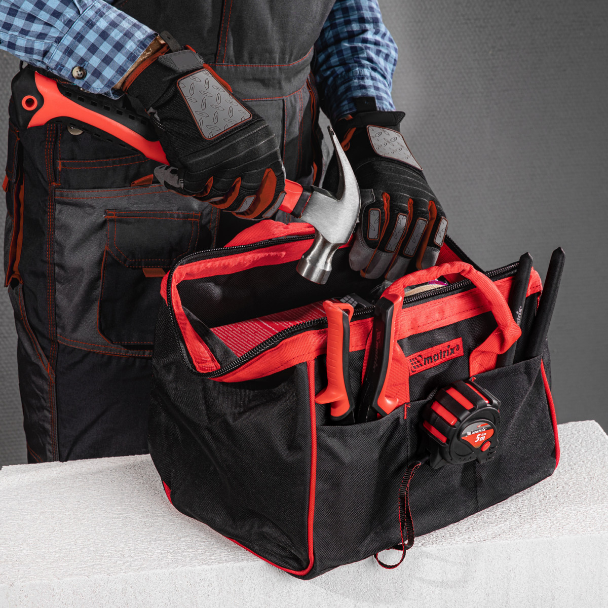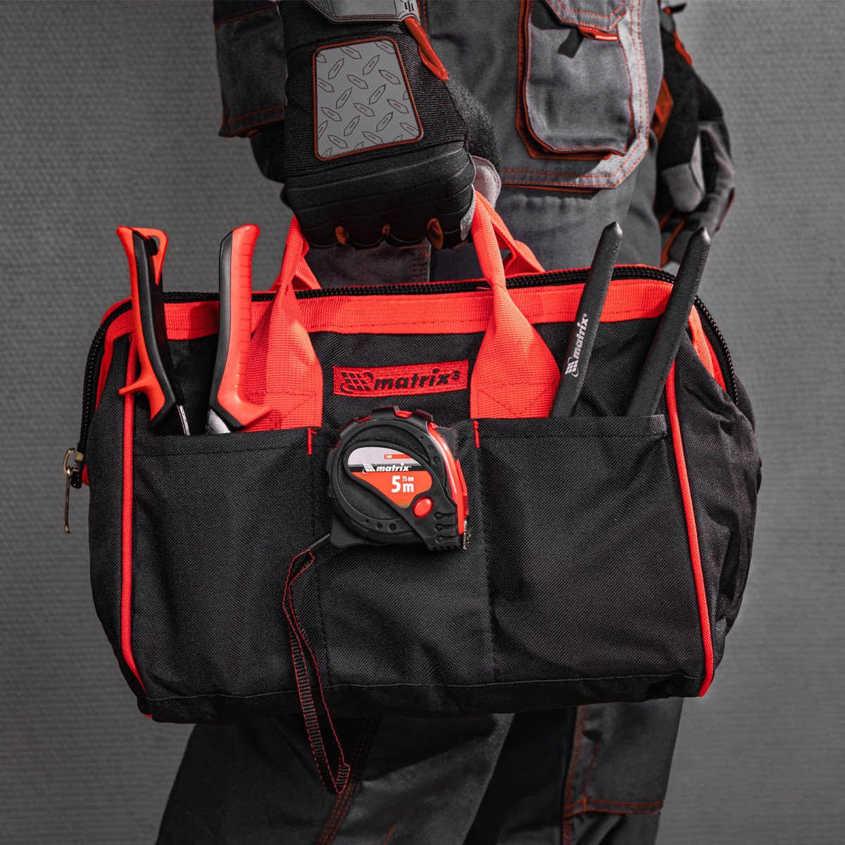 Износостойкий полиэстер обеспечивает долговечность сумки для инструментов Matrix.