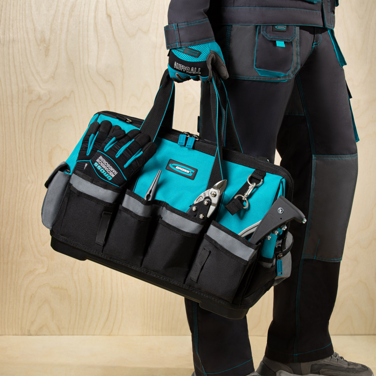 Сумка для инструмента HanD Werker, 42 кармана, дно пластик, наплечный ремень, 475 х 260 х 360 мм Gross