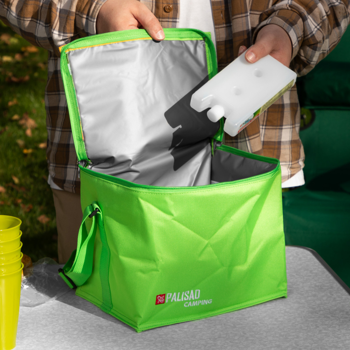 Сумка-холодильник Palisad Camping 69598 размером 28 х 20 х 24 см сохранит продукты и напитки прохладными в жару. Для этого в комплекте имеется пакет с охлаждающим гелем. Дополнительно можно приобрести аккумуляторы холода Palisad 69601. Теплоизоляционный слой из высококачественных материалов PEVA, EPE эффективно поддерживает температуру внутри сумки. Изделие пригодится для перевозки продуктов и напитков, также его можно взять с собой на пикник.