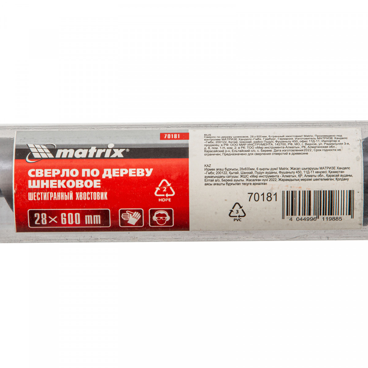 Сверло по дереву шнековое, 28 х 600 мм, шестигранный хвостовик Matrix