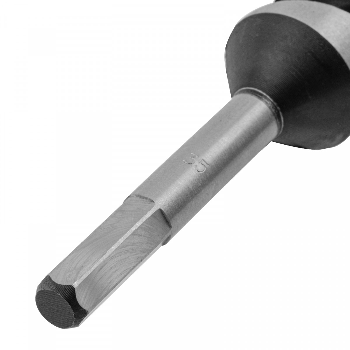 • Прочность и износостойкость — сверло изготовлено из инструментальной стали, а режущая часть закалена до твердости 40 HRC.