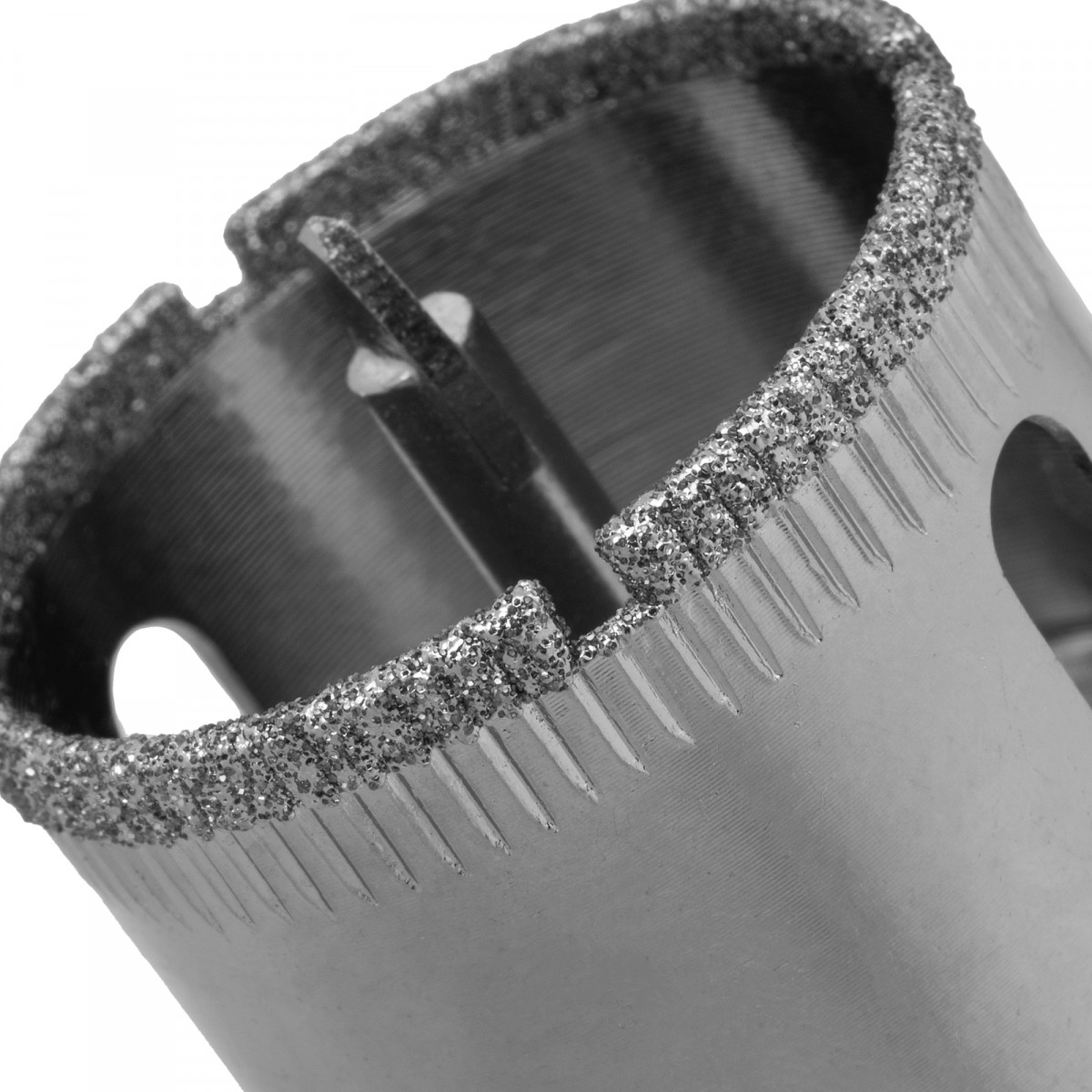 - Точное позиционирование — центрирующее сверло быстро заглубляется в материал, не давая коронке сдвигаться во время сверления.