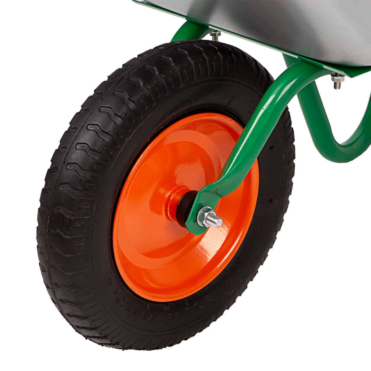 - Удобное перемещение — пневмоколесо на 2 шариковых подшипниках обеспечивает маневренность и проходимость тачки.