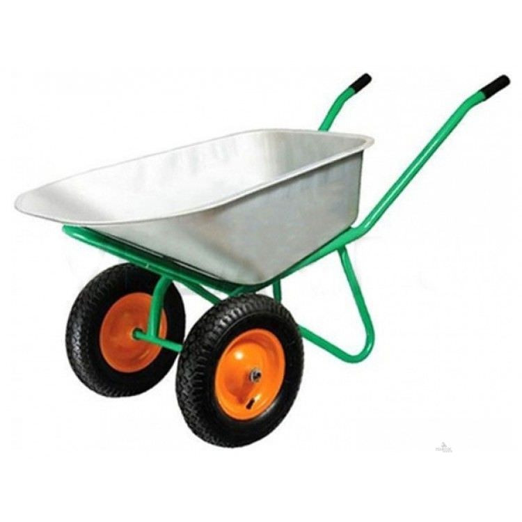 Двухколесная строительная тачка с пневмоколесом используется для перевозки садовых и строительных материалов. Два пневматических колеса способствует хорошей проходимости и отличаются бесшумностью при движении. Корыто из оцинкованной стали с полимерным покрытием отличается устойчивостью к воздействию коррозии для долгого срока службы. Резиновые накладки обеспечивают надежное удержание тачки. Объем кузова 110л, грузоп-сть 250кг, колесо 3.25-8, толщина метала кузова 0,7 мм, трубы 30*25 мм.
