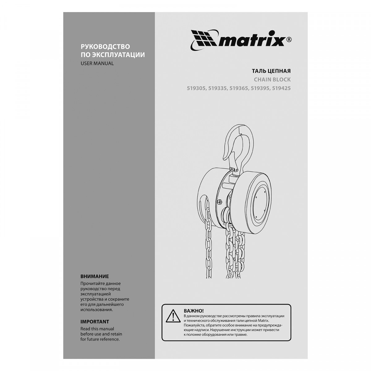 Таль цепная, 5 т, H подъема 3 м, расстояние между крюками 600 мм Matrix