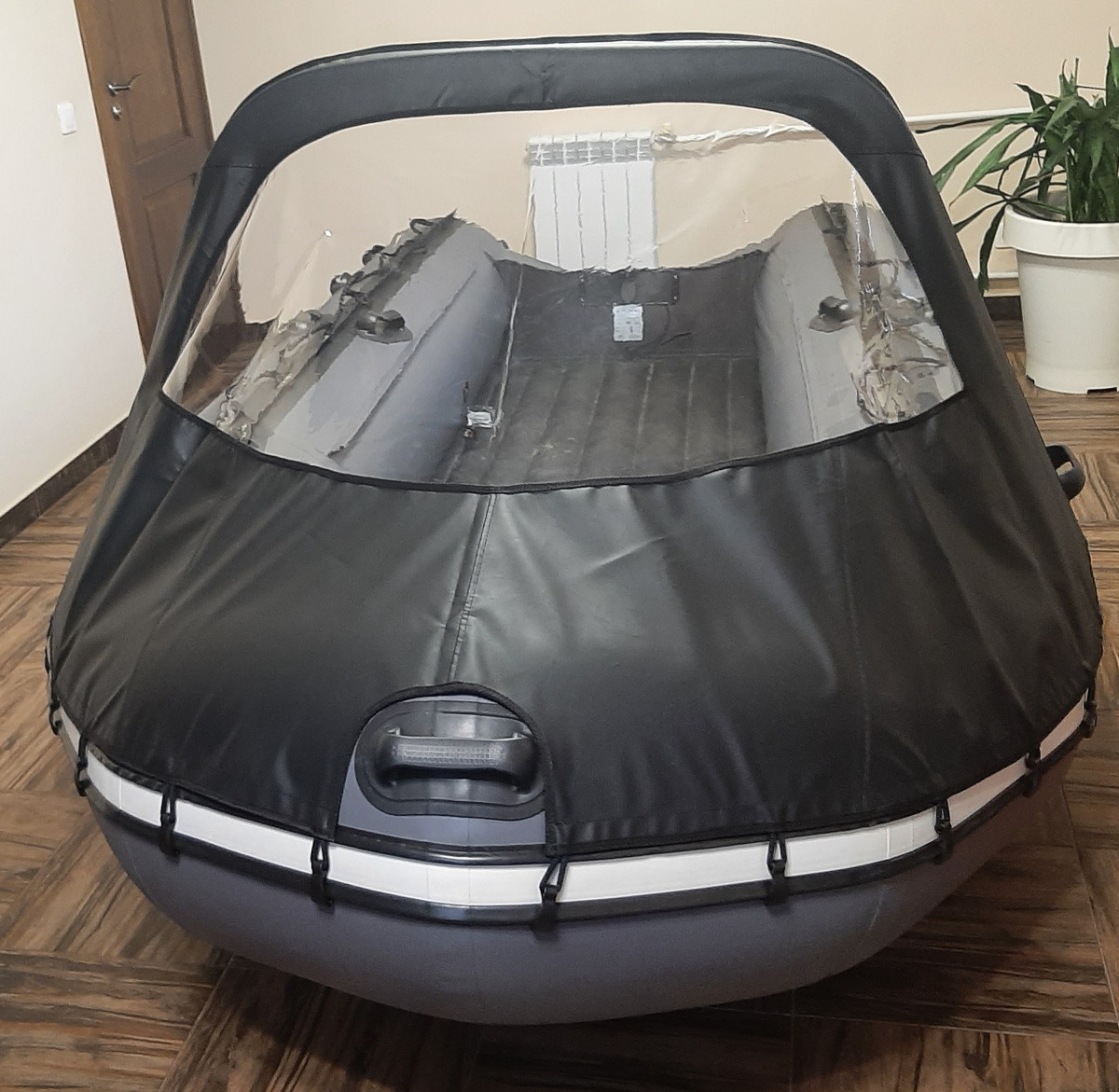 Тент носовой для лодок Апачи как НДНД так и СК, в размерности от 3300 до 3700 моделей, предназначен для защиты пассажиров и вещей от набегающего ветра и брызг во время движения или стоянки мотолодки. Прекрасно дополняет конструкцию надувной лодки и придает ей обводы полноценного современного катера. Подходит для надувных лодок серии Апачи 3300; 3500 и 3700. Расцветка только одна - черная. Окно из прозрачного, мягкого пластика позволяет смотреть через тент, но картинка искажается. Для установки потребуется наклеить опорные пятаки со втулками, предварительно установив и натянув тент на лодке. Подобрать правильное место под опоры, разметить и воспользоваться клеем из комплекта поставки. Отстегнув пару крючков от бокового привала, тент можно сложить на борт. Оригинальная конструкция от производителя самой лодки.
