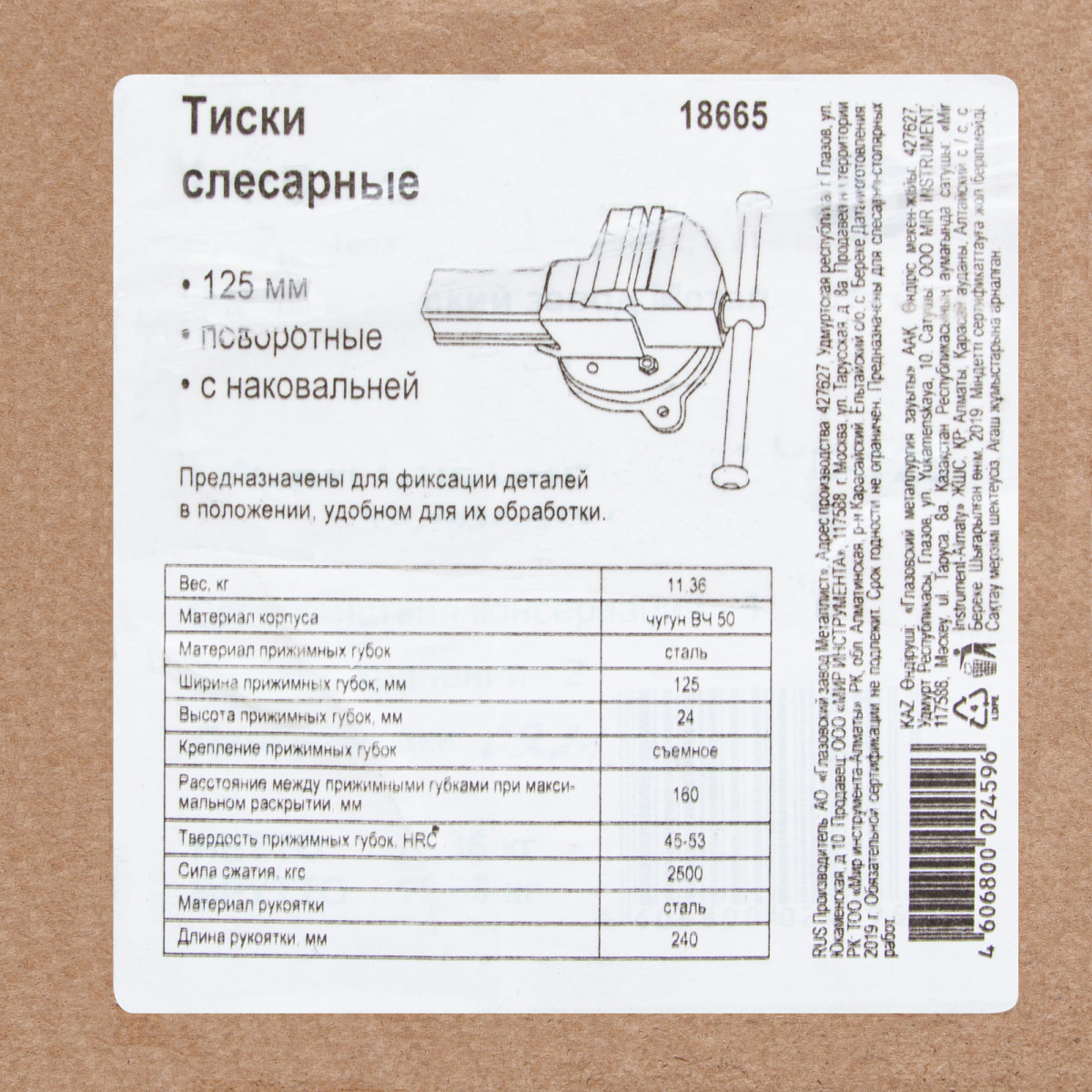 • Прочность и долговечность — корпус изготовлен из чугуна ВЧ50, а губки — из стали 50Х.