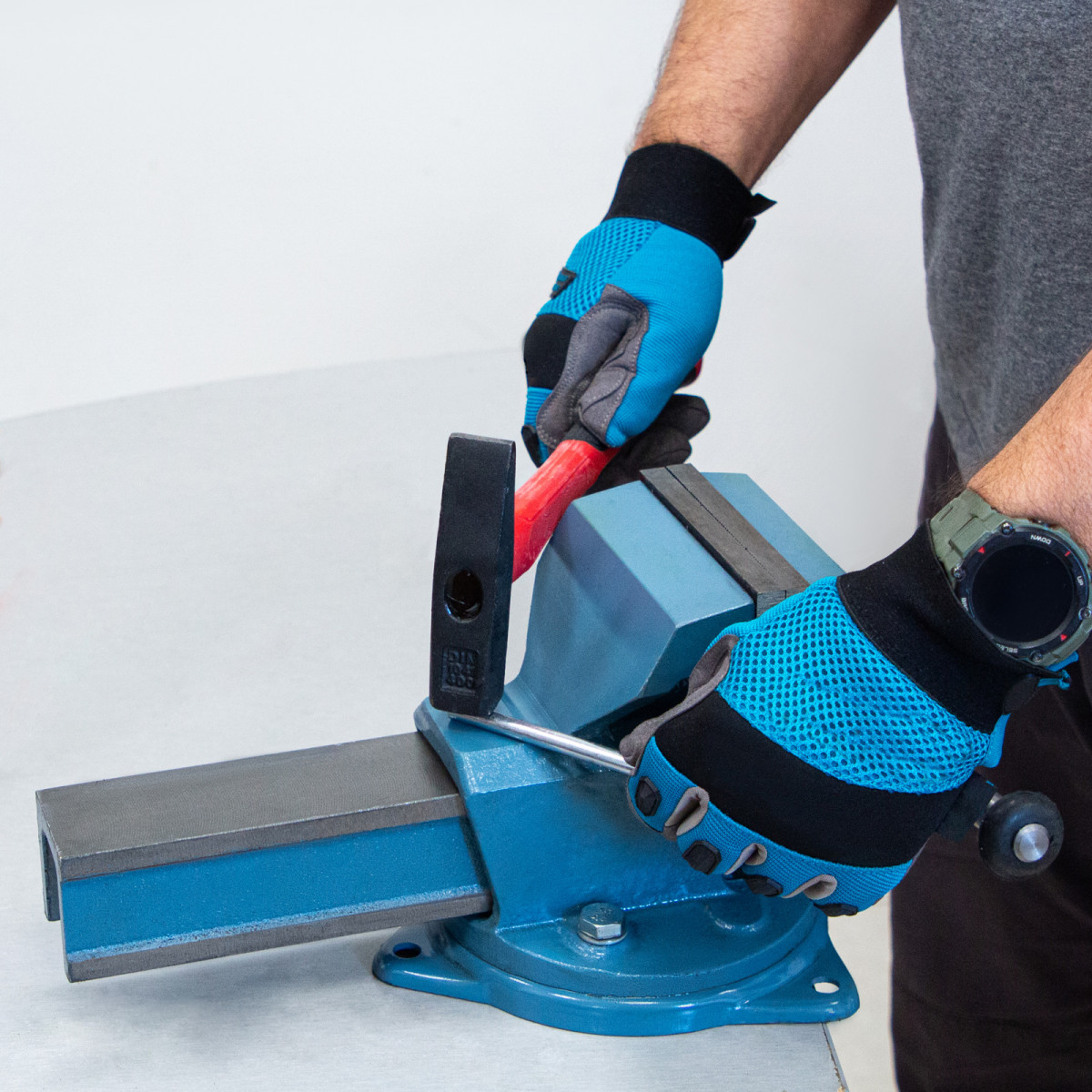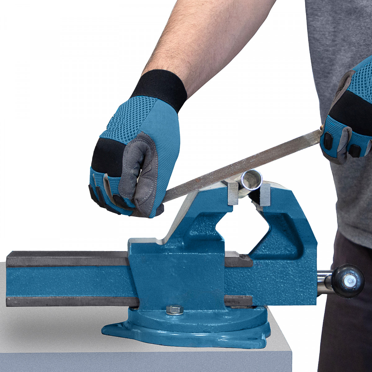• Надежная фиксация изделий — тиски оснащены рельефными губками.