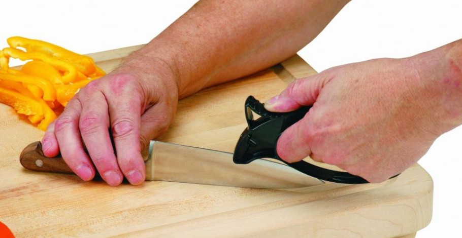 Оптимальный угол заточки, подходит для разных типов ножей, проста в использовании.