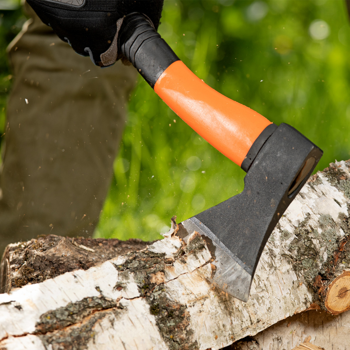Фибергласовое топорище обеспечивает высокую прочность и долговечность.