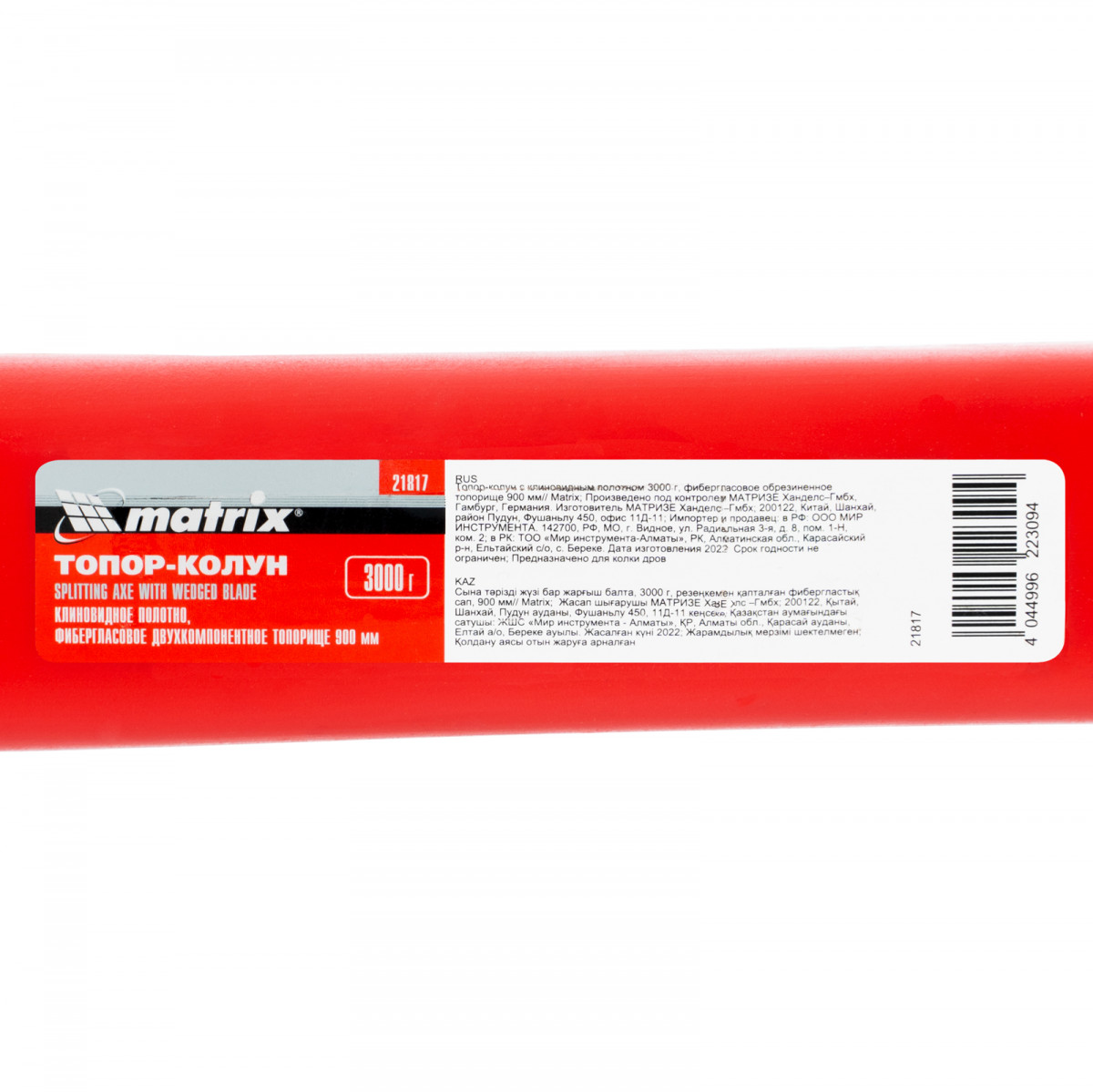 Топор-колун Matrix 21817 длиной 900 мм, с клиновидным полотном весом 3000 г и фибергласовым обрезиненным топорищем, предназначен для колки и рубки древесины. Длинное топорище в сочетании с массивной рабочей частью позволяет наносить сильные удары и справляться с поленьями большого диаметра. Инструмент пригодится для заготовки дров.