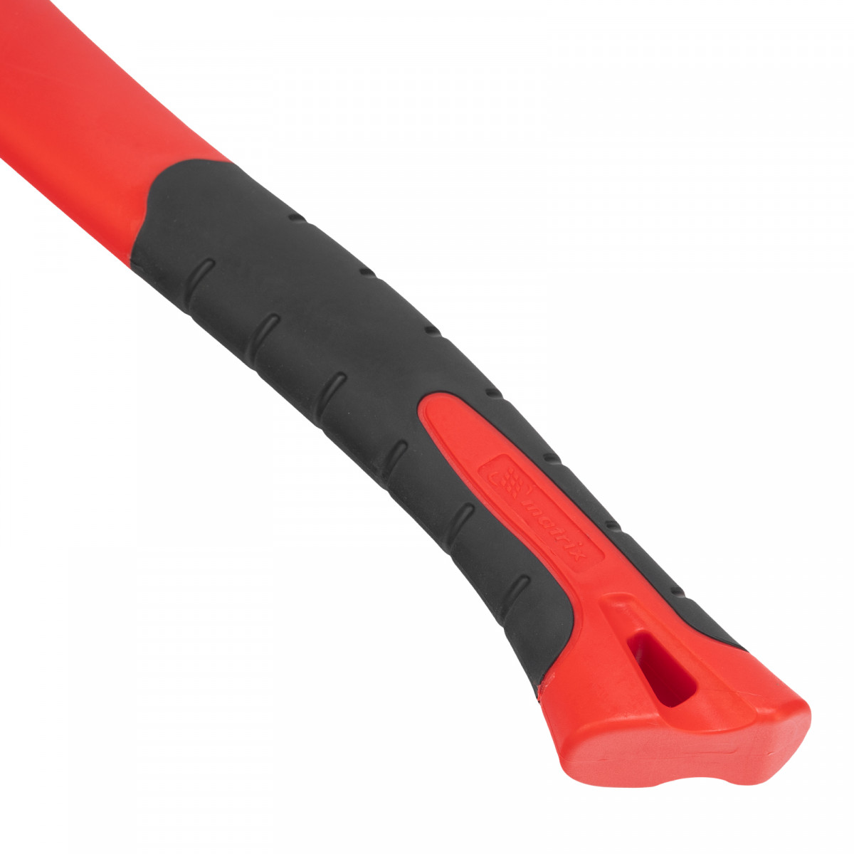 - Эргономичность — слегка изогнутое двухкомпонентное топорище с резиновыми накладками не выскальзывает из рук.