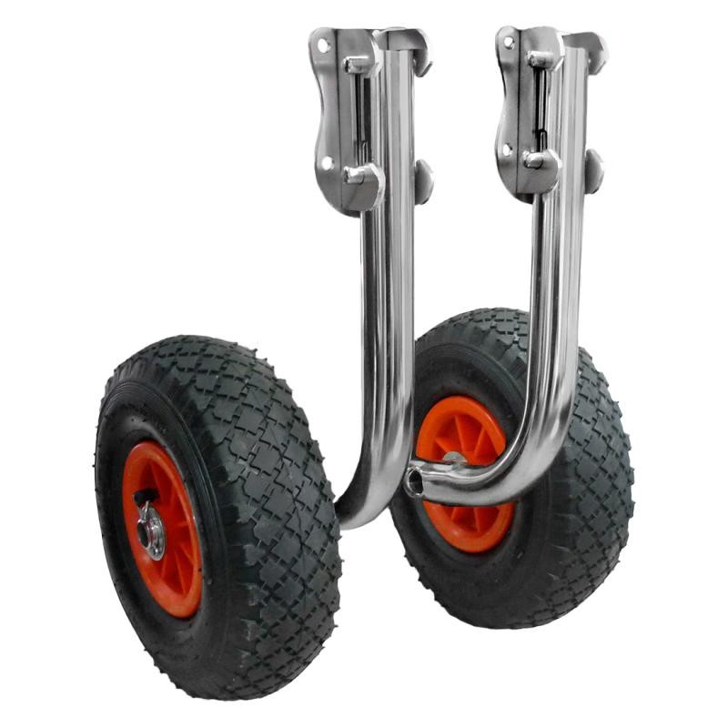 Транцевые колеса устанавливаются на транец моторной лодки, и помогают в одиночку перевозить лодку. Они сильно упрощают эксплуатацию лодки. С данными транцевыми колесами вы можете в одиночку перевозить свою моторную лодку от машины/дома до воды!