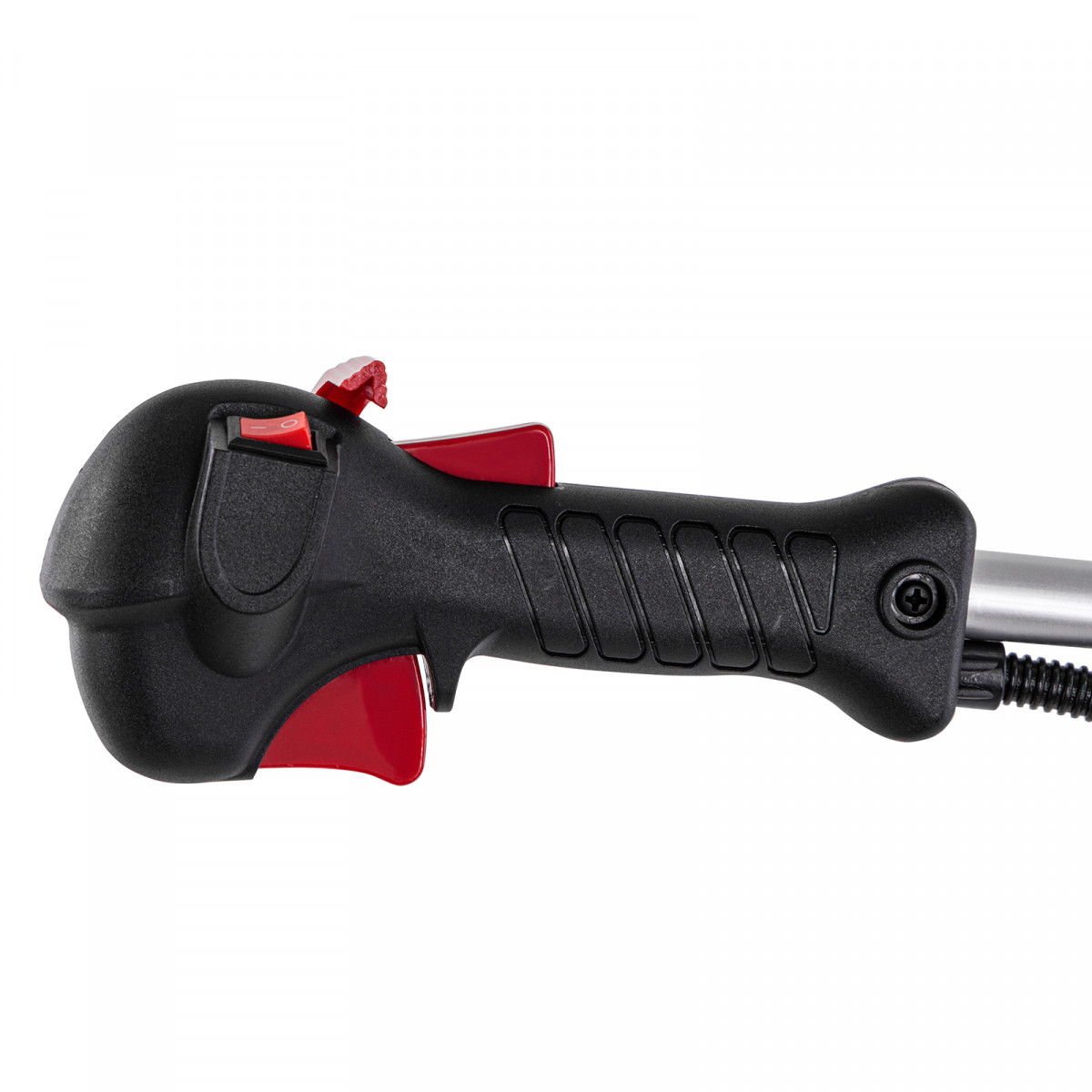 - Комфортная работа — инструмент хорошо сбалансирован, велосипедные асимметричные ручки позволяют легко удерживать и направлять триммер.