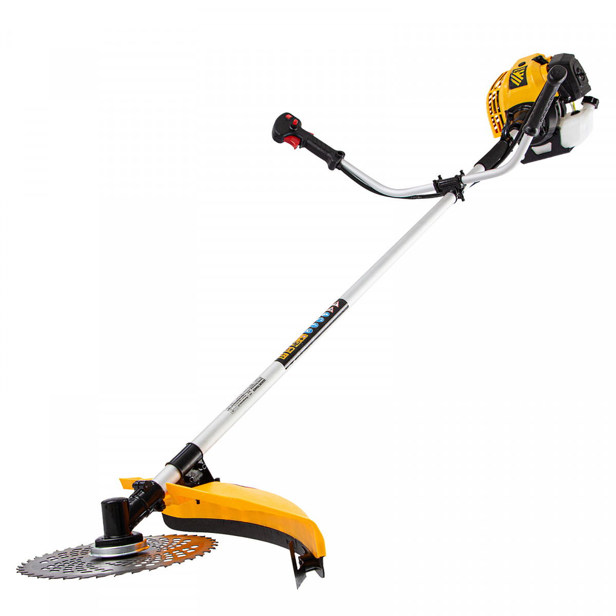 Бензиновый триммер Denzel DT-52 96226 оснащен экономичным, надежным и простым в эксплуатации двигателем мощностью 3 л.с. и объемом 52 см3, имеет неразъемную штангу и поставляется комплектом из 2 частей. Оптимален для подравнивания газона, избавления от травы с жесткими древовидными стеблями (полыни, крапивы, лебеды, борщевика), а также срезания кустарника и молодых побегов деревьев со стволами диаметром до 10 мм. Эффективно скашивает траву в труднодоступных местах: вдоль кромок дорожек, стен строений и вокруг деревьев. В комплект поставки входит катушка с леской для невысокой травы любой густоты, а также пильный диск для высокой сухой травы, лопухов, крапивы и борщевика. Испытаниями подтверждена возможность безотказной работы на протяжении не менее 80 часов.