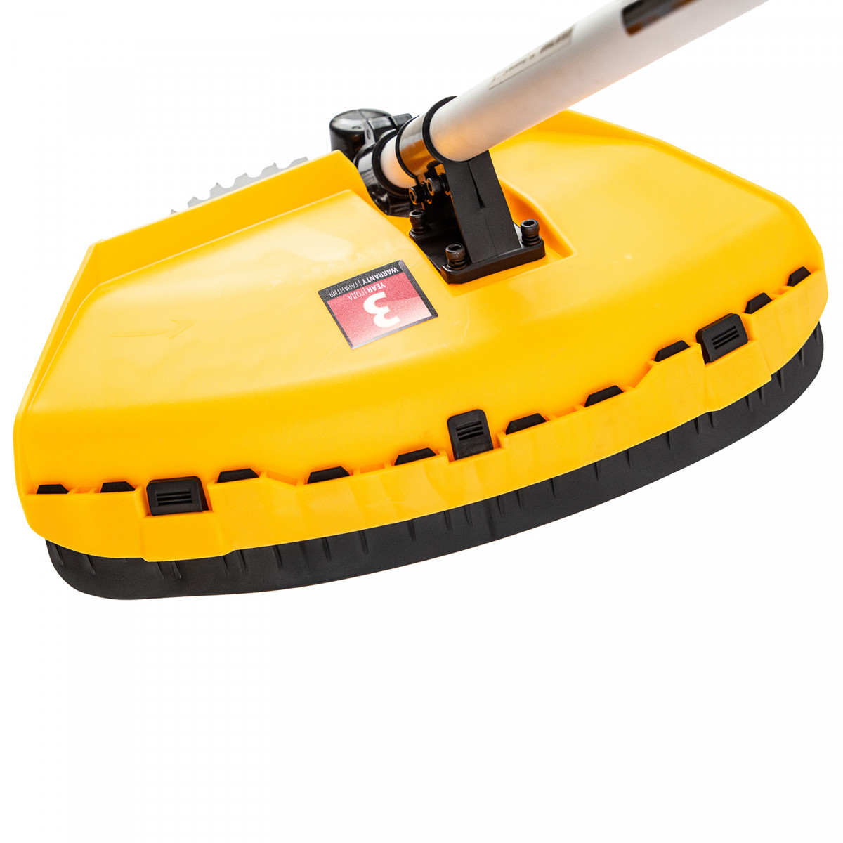 • Безопасность — пластиковый кожух защищает пользователя от вылетающей травы, камней, веток и мелких частиц.