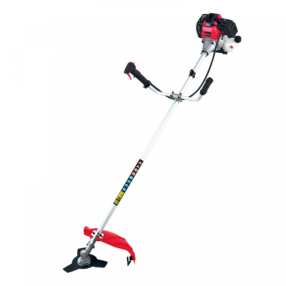 • Безопасность — производитель предусмотрел блокировку курка газа для предотвращения случайного запуска, защитный кожух препятствует вылету травы, веток, камней в сторону пользователя.