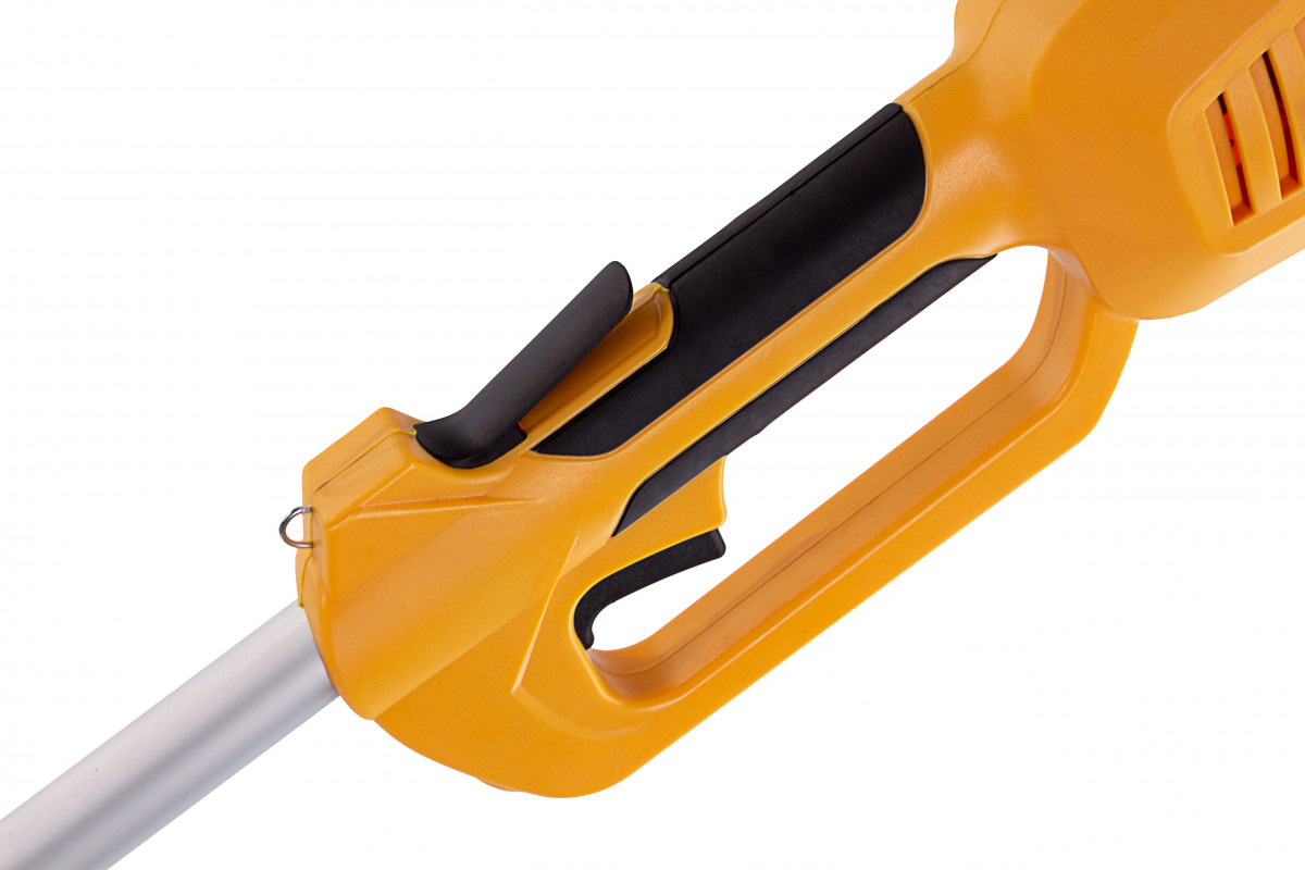 • Удобное хранение и транспортировка — благодаря разборной штанге триммер не занимает много места.