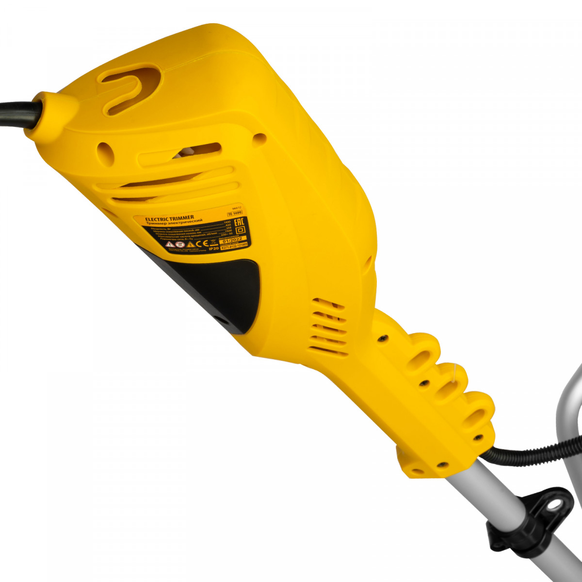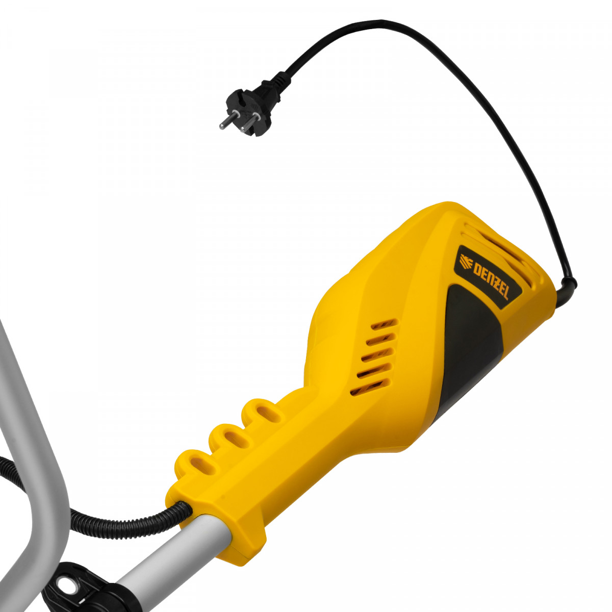 Триммер Denzel TE-1400 96612 мощностью 1400 Вт, с разборной штангой, комплектуется катушкой с леской и 3-лопастным диском, ширина скашивания составляет 420 мм и 255 мм соответственно. Идеален для скашивания травы различных типов, в том числе с жесткими стеблями (полыни, крапивы, лебеды). Благодаря верхнему расположению двигателя может косить мокрую траву. Двигатель мощностью 1400 Вт обеспечивает вращение оснастки с частотой 7500 об/мин, поэтому уход за участком не займет много времени. Электротриммер прост в обращении — ему не требуется сложное техническое обслуживание, пользоваться им сможет даже новичок. ,К триммеру можно приобрести диск Denzel 96323 с шириной скашивания 230 мм для быстрого удаления растительности с жесткими стеблями, 96328 для скашивания молодых побегов кустарника диаметром до 3 мм, 96340 для срезания борщевика, кустарника и молодых побегов деревьев с диаметром стволов до 10 мм.