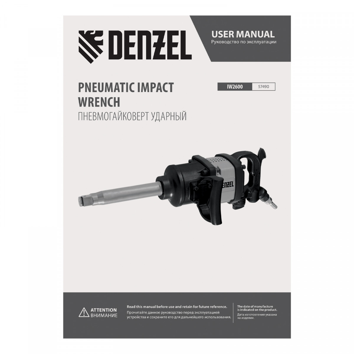 Ударный пневмогайковерт IW2600, 1", 4000 об/мин, 2600 Нм Denzel