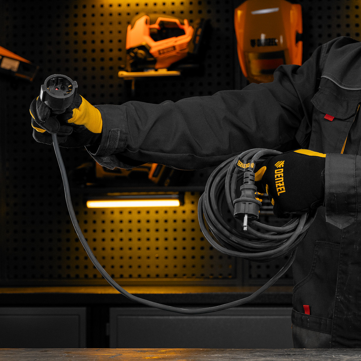 Удлинитель-шнур Denzel Top Series обладает высокой степенью защиты IP 44.