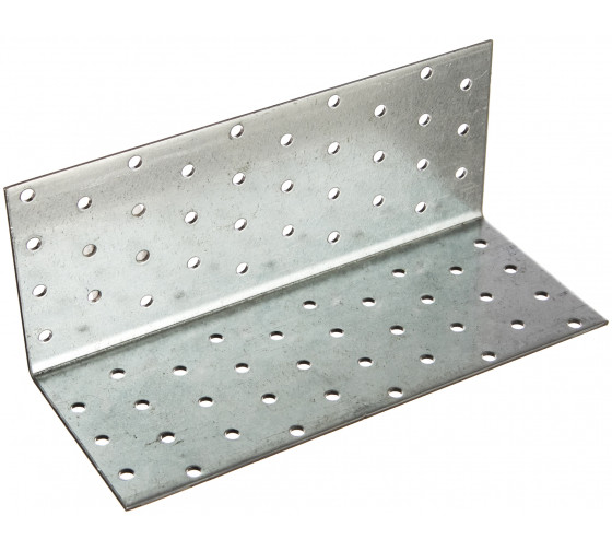Уголок изготовлен из оцинкованной стали и используется для скрепления балок, брусьев, досок и других деревянных изделий.