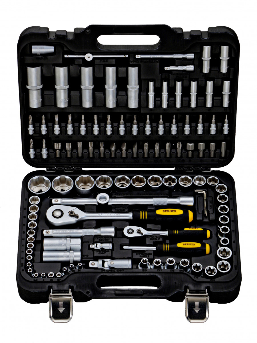 Универсальный набор инструментов Berger BG BG108-1214 состоит из 108 предметов, которые выполнены из качественной хромованадиевой стали и защищены от образования коррозии. Благодаря уникальной технологии закаливания и гальванизации инструменты обладают высокой прочностью и износостойкостью. Набор поставляется в прочном кейсе, где каждый инструмент занимает фиксированное место и легко извлекается.