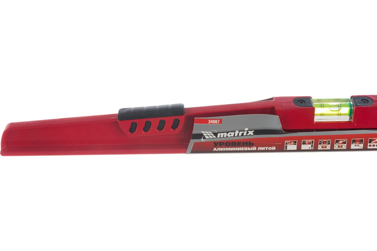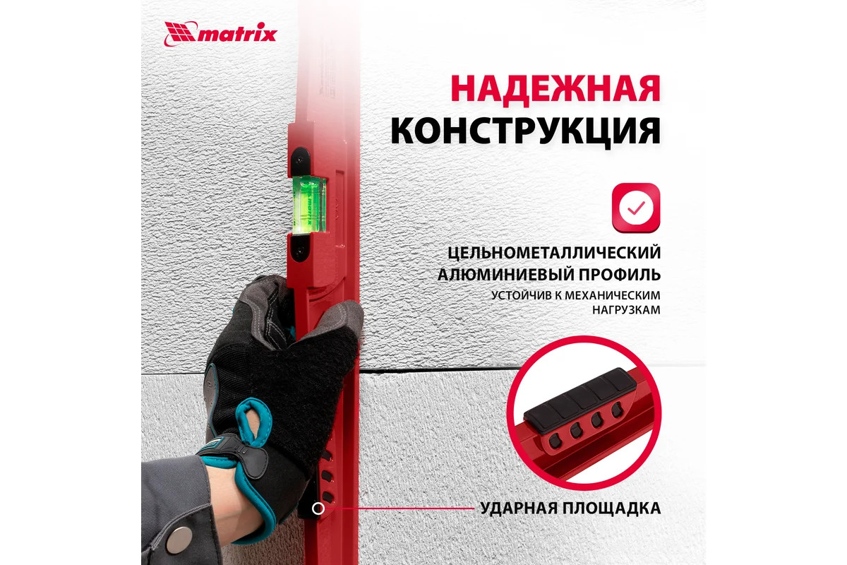 Алюминиевый уровень 600 мм, литой, 2 глазка , ударная площадка MATRIX 34907 обладает высокой прочностью. Наличие ударной площадки для выравнивания кирпича или блоков при укладке существенно упрощает работу кладочника. Для точности измерений имеются насечки возле каждого глазка и отражатели.