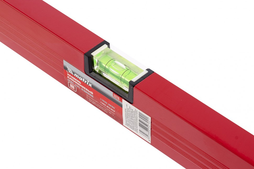 Алюминиевый уровень Matrix 33226 длиной 800 мм, красного цвета, с 3 глазками и линейкой, пригодится при проведении строительных, ремонтных и монтажных работ. С ним повышается точность работы, что позволяет добиться качественного результата. Три колбы рассчитаны на проверку горизонтали, вертикали и угла 45 градусов, погрешность равна 1 мм/м (0,057 градуса).,Для определения отклонения вертикали 90 градусов необходимо использовать пузырьковую ампулу только в верхнем положении уровня. Только базовая поверхность является рабочей (противоположная ампуле 180 градусов).