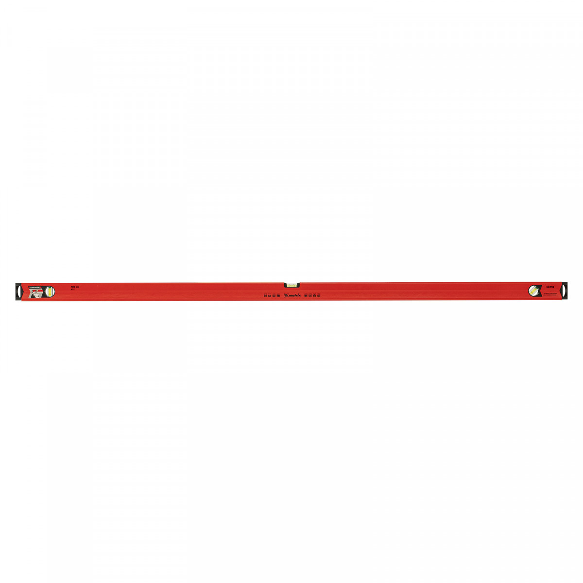 Уровень алюминиевый магнитный Matrix 34718 усиленной конструкции, длиной 1800 мм, с фрезерованной рабочей поверхностью, оснащен 3 глазками и одним зеркальным отражателем. Позволяет выявить отклонения от вертикали, горизонтали и угла 45°. Встроенный зеркальный глазок облегчает считывание показаний.