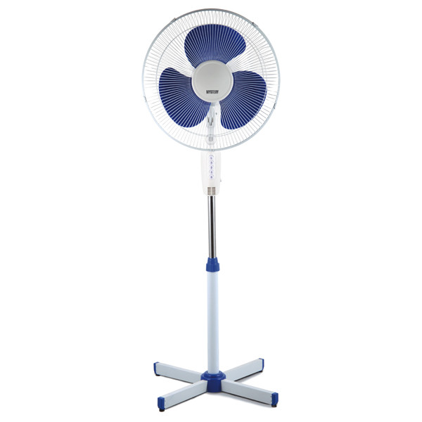Бытовой вентилятор Mystery MSF-2445 предназначен для напольного использования. Производителем предусмотрены три режима функционирования. Номинальная мощность устройства достигает 40 Вт. Среди основных достоинств стоит отметить наличие функции регулировки высоты и поворота, что позволяет направить головную часть с лопастями в нужном направлении. Устойчивость корпуса обеспечивается ножкой с крестовидным основанием. Вращающие лопасти защищены от попадания сторонних предметов специальной решеткой.