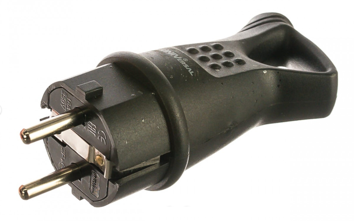Угловая однофазная вилка с ушком, каучук UNIVersal 0003 служит для присоединения к сети электропитания различных бытовых электроприборов мощностью до 3,5 кВт. Изделие предназначено для эксплуатации в суровых условиях - на открытом воздухе или во влажных или запыленных помещениях, например: на дачном участке, на строительных площадках и пр. Угловой ввод питающего кабеля и наличие «кольца» позволяют сэкономить пространство около стационарной розетки, а также легко и быстро, без лишних усилий извлекать вилку из сети.