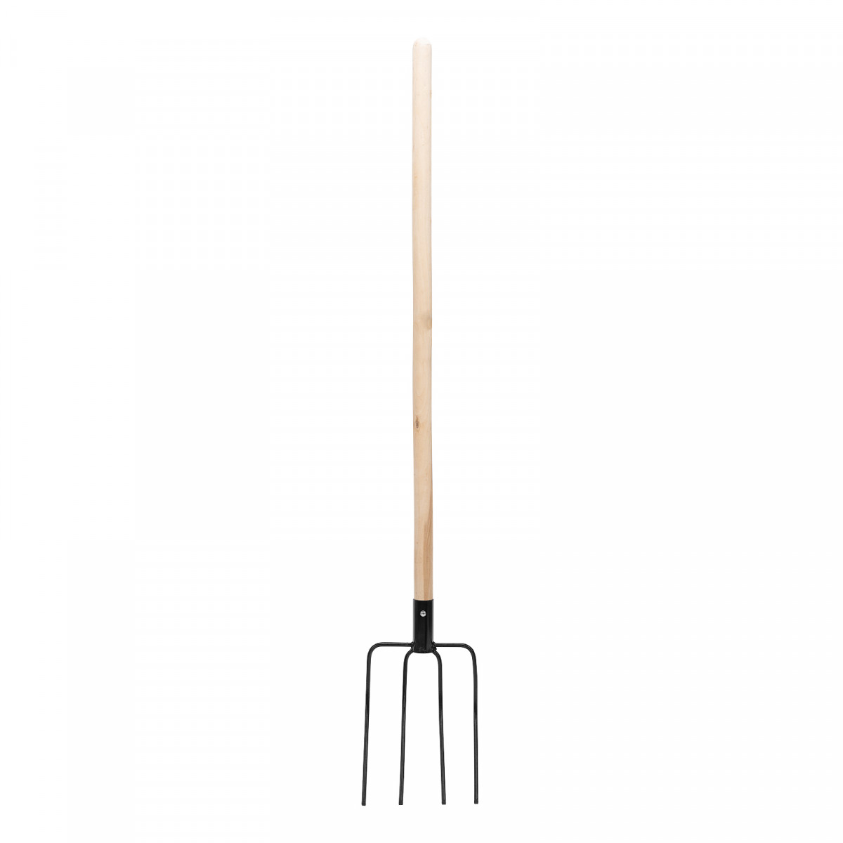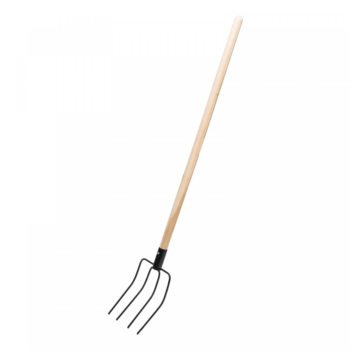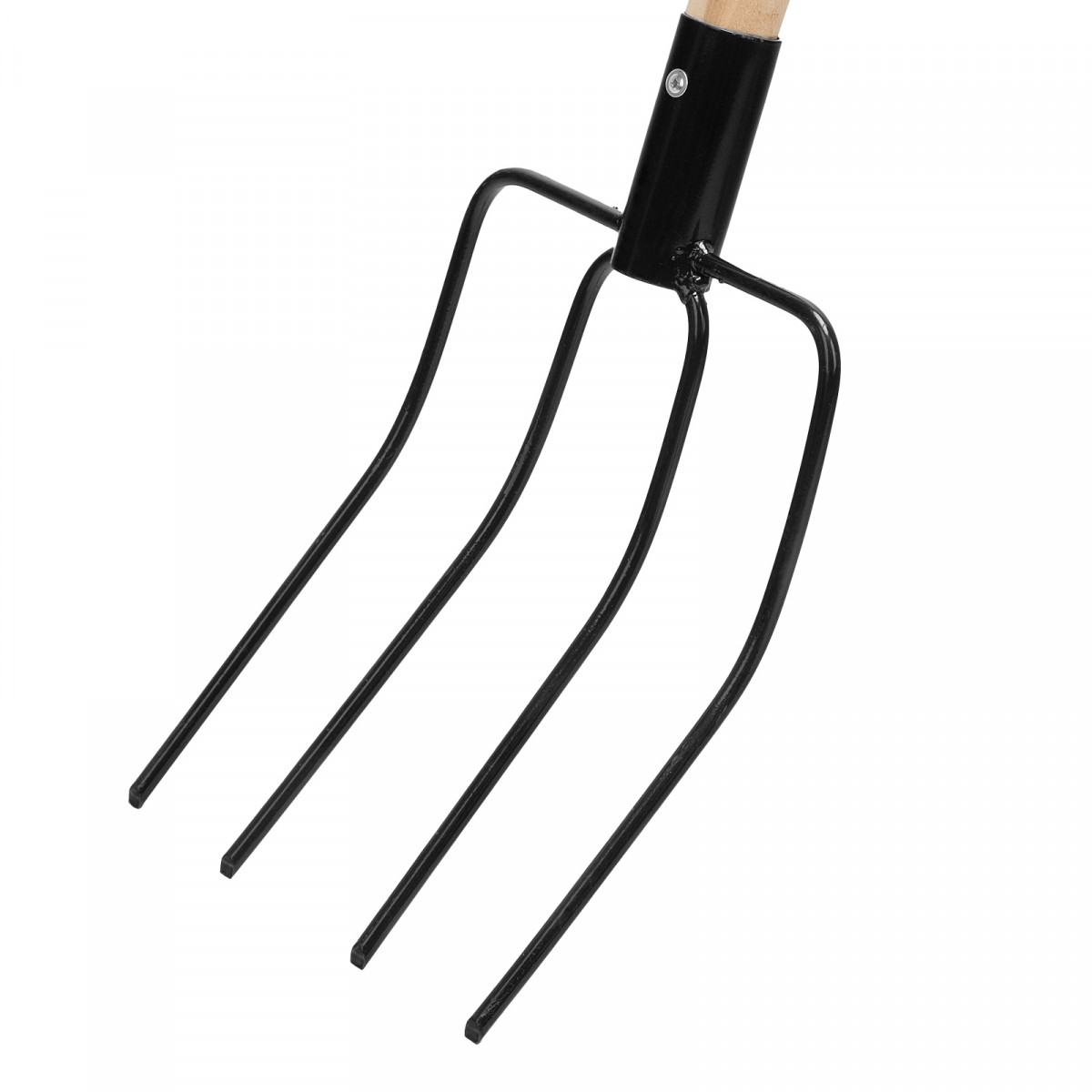 • Комфортная работа — деревянный черенок обеспечивает удобный хват, а рога с острыми концами надежно захватывают траву и сено.