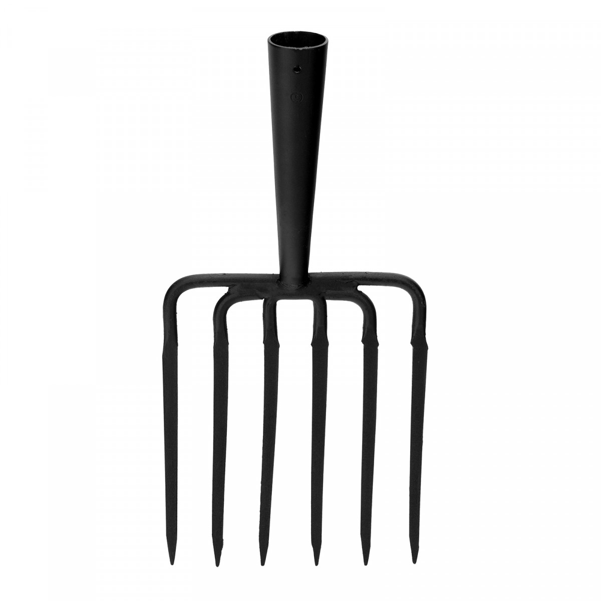 Кованые копальные 6-рогие вилы АРТИ 63839 без черенка, размером 195 х 220 мм, оптимальны для садово-огородных работ: разрыхления, перекапывания и аэрации земли, выкапывания сорняков и сбора клубней. Широкие вилы с 6 зубьями также пригодятся для уборки и перемещения перегноя и навоза. Инструмент совместим с черенком 68425 (приобретается отдельно).