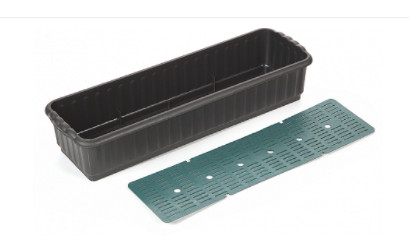 Ящик для цветов и рассады пластмассовый с дренажной решеткой, размер 590*190*120.