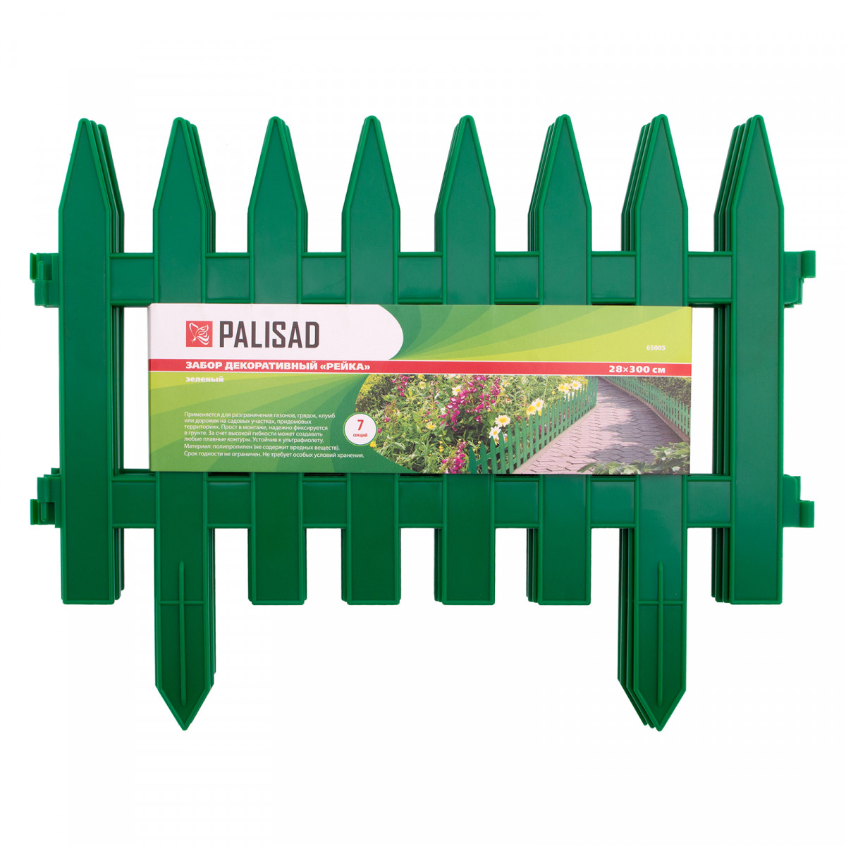 Зеленый декоративный забор Palisad «Рейка» 65005 размером 28 х 300 см позволяет подчеркнуть отдельные зоны озелененной территории. В комплекте 7 оригинальных секций, которые позволяют оформить цветники и грядки, обозначить границы дорожек, оградить деревья и кусты. С заборчиком ландшафт принимает завершенный вид.