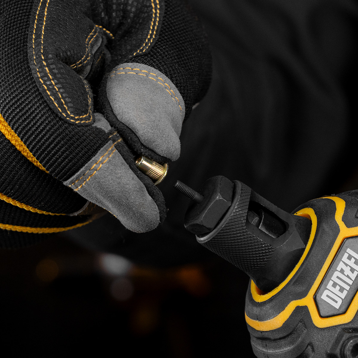 Стальные резьбовые заклепки Denzel выдерживают значительные нагрузки благодаря материалу изготовления.
