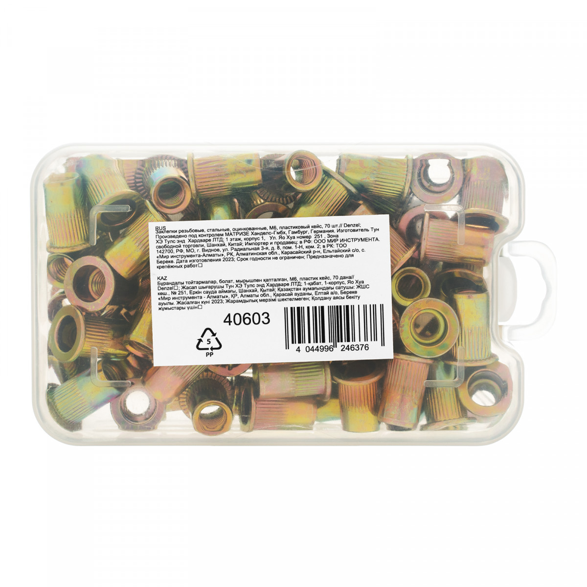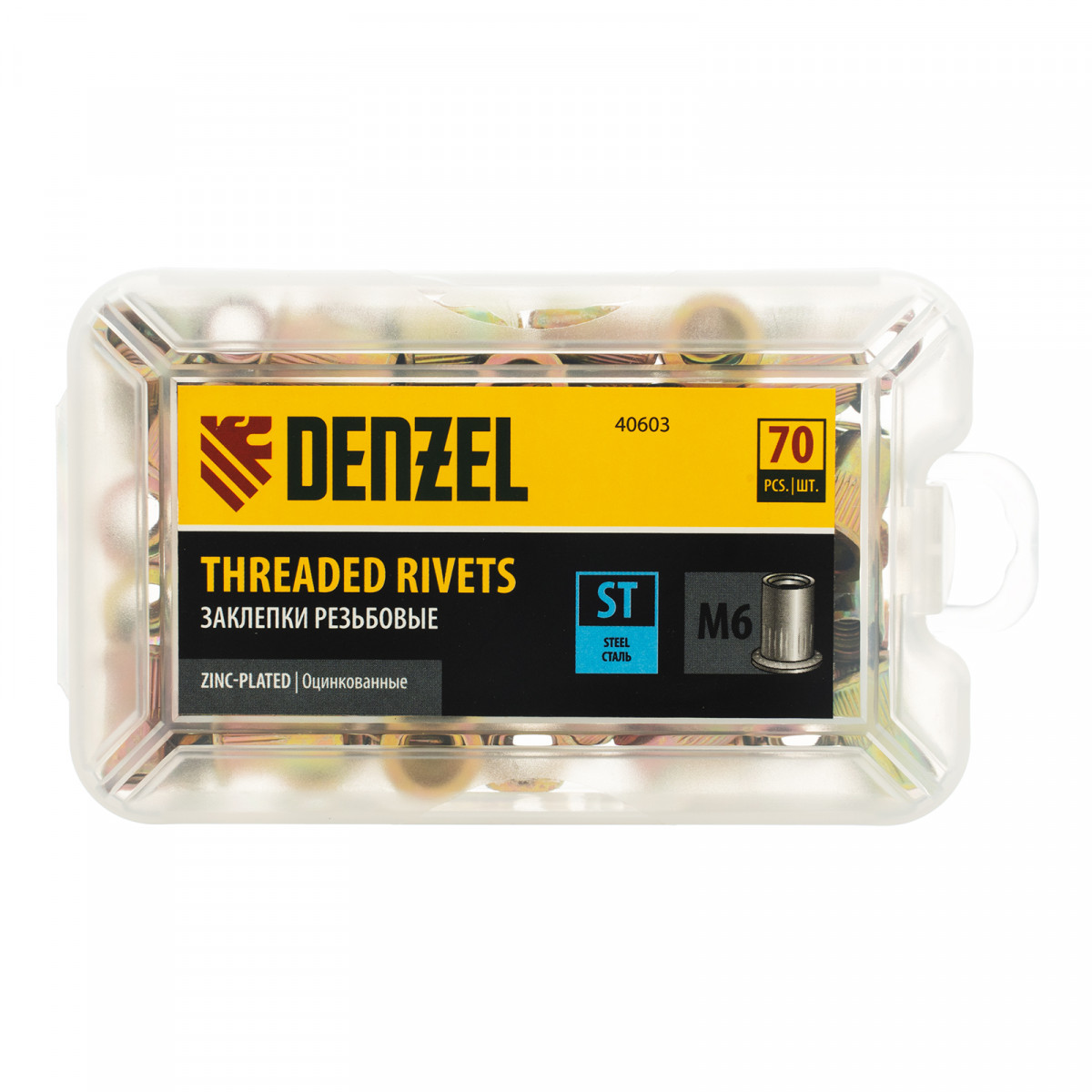 Заклепки резьбовые, стальные, оцинкованные, М6, пластиковый кейс, 70 шт. Denzel