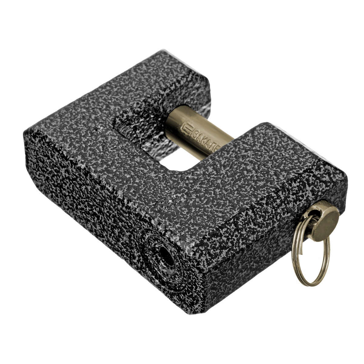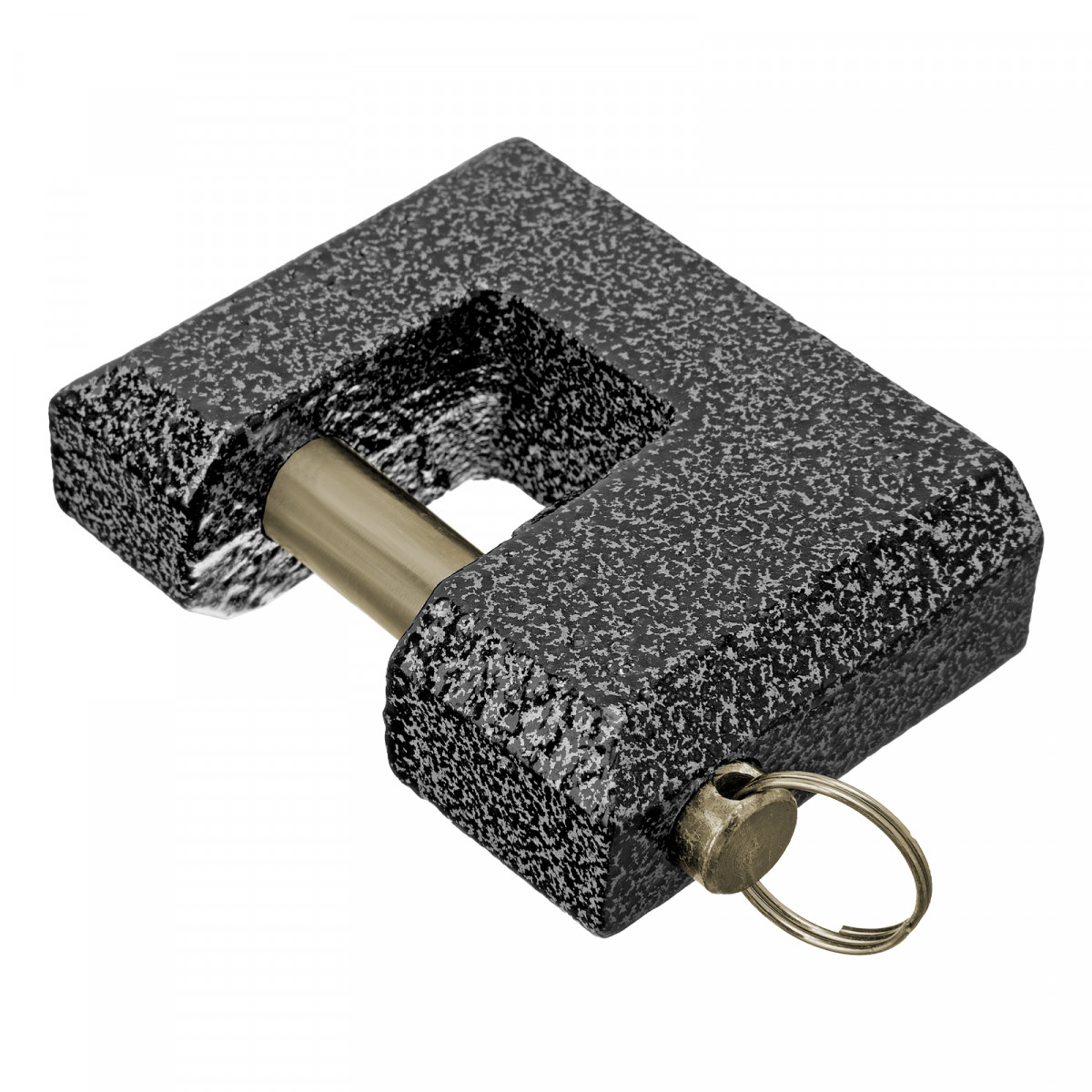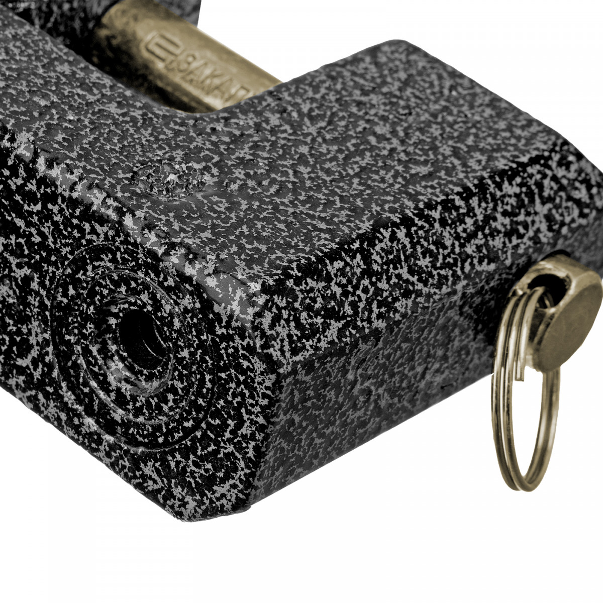 • Высокий показатель прочности — корпус изготовлен из чугуна, а дужка — из стали.