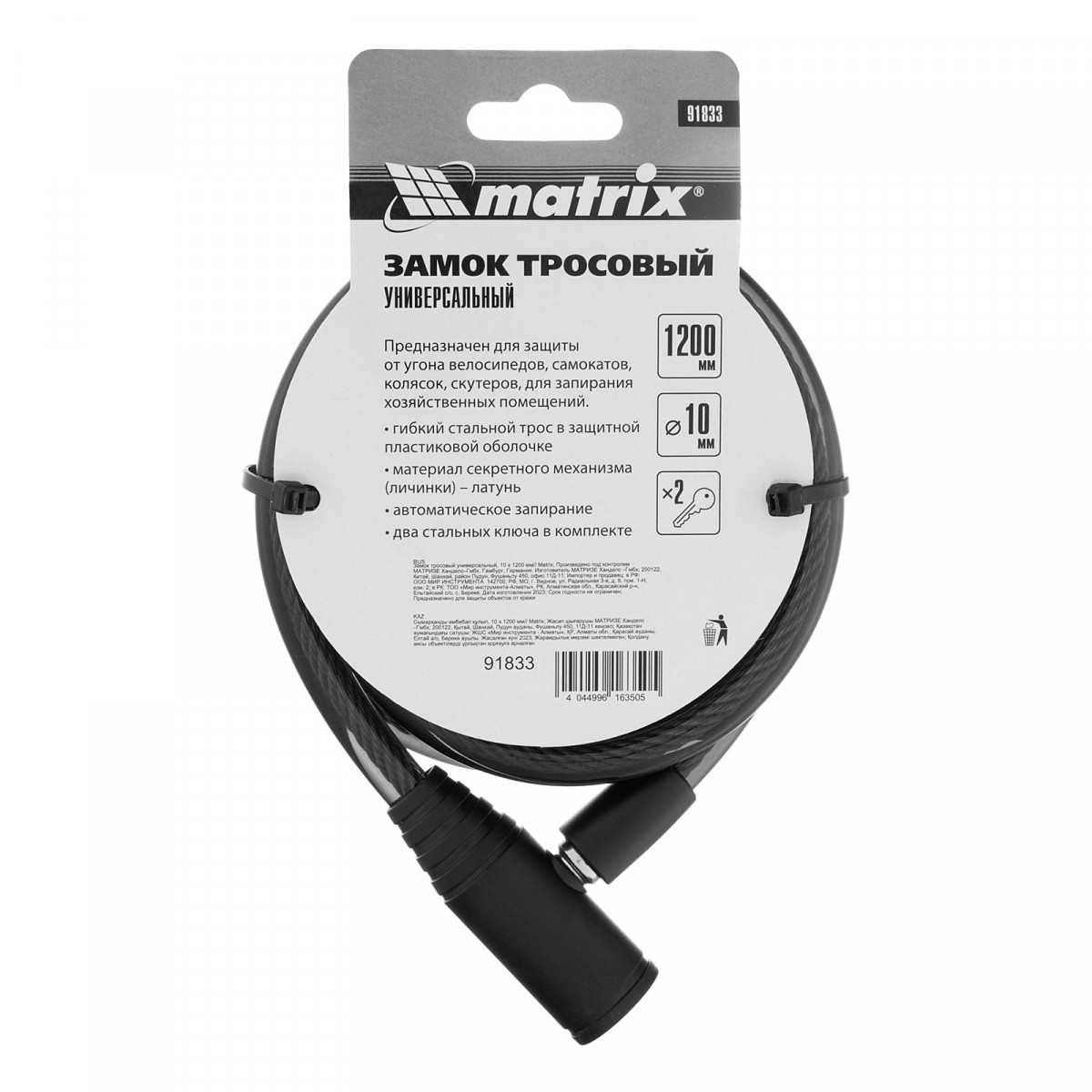 Замок тросовый универсальный, 10 х 1200 мм Matrix