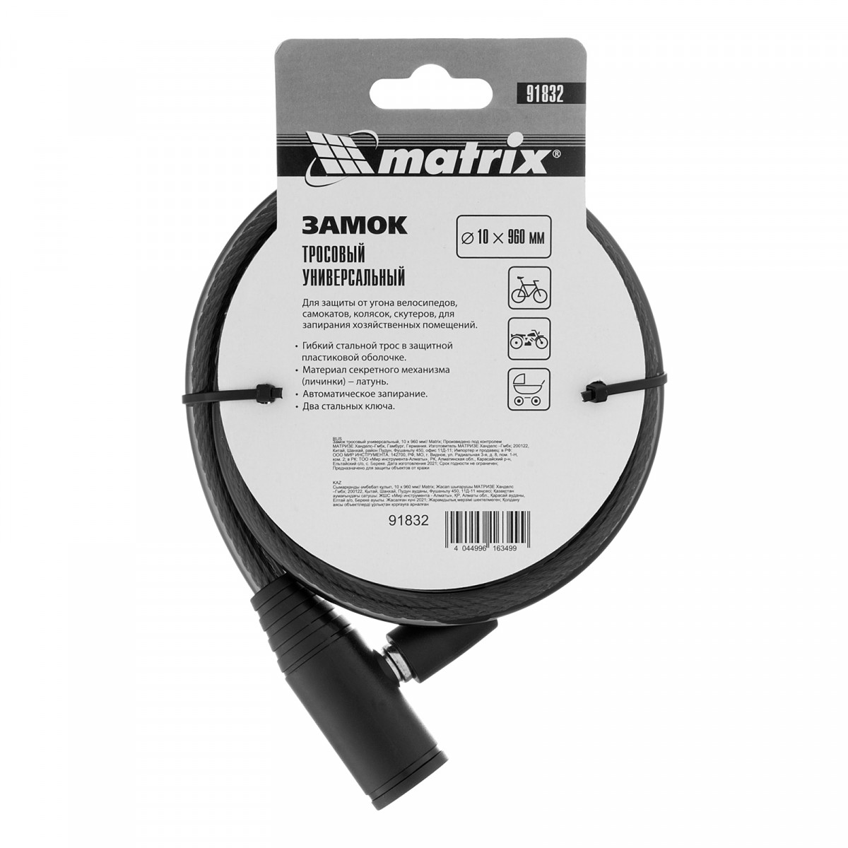 Замок тросовый универсальный, 10 х 960 мм Matrix