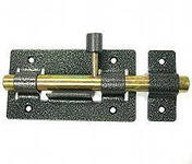 Засов дверной металлический, крашеный, для деревянных и металлических дверей с круглым ригелем. Цвет - бронза.