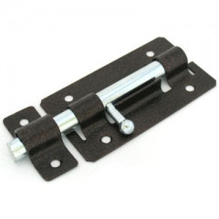 Засов накладной для деревянных и металлических дверей. Материал - сталь, полимерное покрытие. Габариты корпуса - 115х67 мм, 4 крепежных отверстия. Цилиндрический ригель диаметром 13 мм с вылетом 40 мм. В комплекте ответная планка 65х25 мм