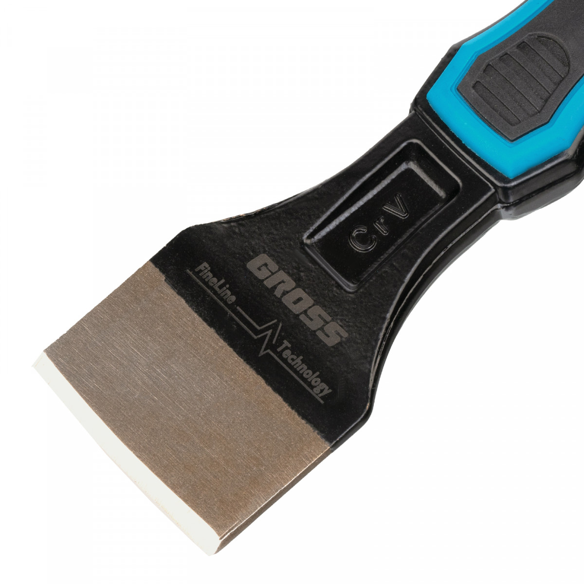 Зубило-конопатка Gross 18714 размером 200 х 45 мм-3/4 дюйма — ручной режущий инструмент, работающий под ударным воздействием молотка или киянки. Рассчитано на работу с деревянным срубом, плиткой, камнем, кирпичом. Используется для запечатывания швов, монтажа утеплителя в деревянных постройках, демонтажа облицовки и решения других задач.